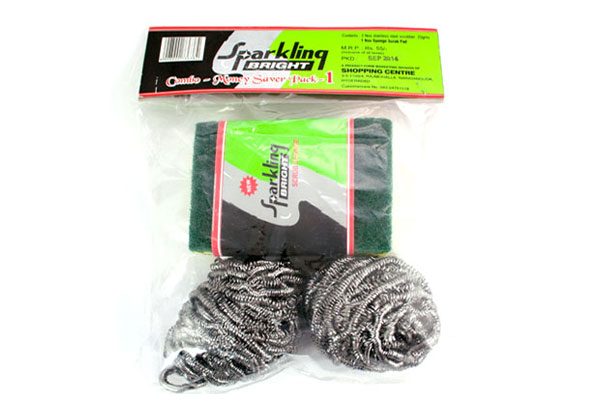 Sparkling bright suggests unique combination of sponge scrub and 2 stainless steel scrubbers filled in a money saver pack. These scrubbers will not disintegrate or rust like steel wool and guarantees longer life than normal. This scrubber will last longer and hygienic dishes efficiently. It is greatest for your kitchen.