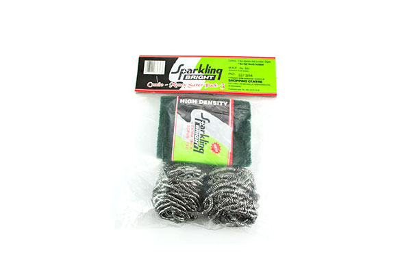 Sparkling bright suggests unique combination of high density scrub 2 stainless steel scrubbers packed in a money saver pack. Each and every curl and spring of these scrubbers will eliminate most stubborn stain or burnt stain marks on the utensils. It aids to eliminate the tough stains in your kitchen utensils.